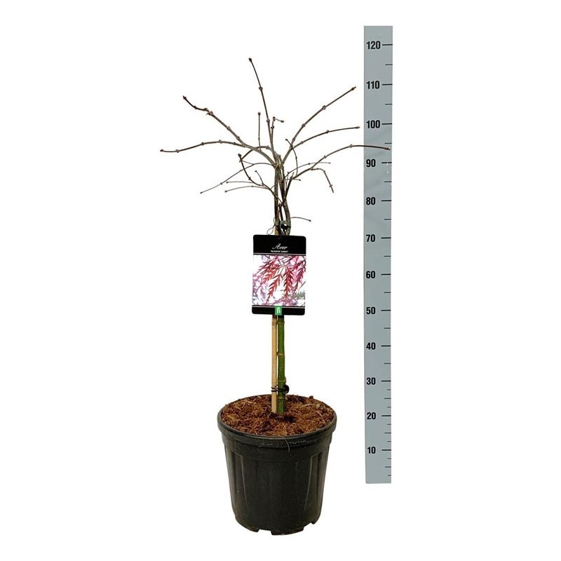 Acer Garnet ma delikatne, dłoniowate liście, które latem są ciemnofioletowe i mają subtelny połysk. Jesienią zmieniają kolor na piękny odcień czerwieni. Klon ten pozostaje stosunkowo niewielki, osiągając wysokość około 2,5 do 4 metrów, co czyni go idealnym do mniejszych ogrodów lub jako roślinę ozdobną w doniczce.