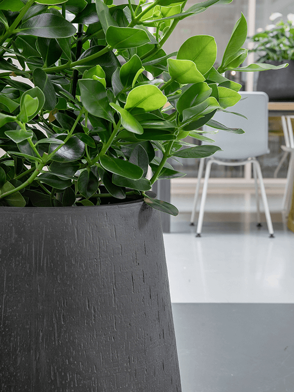 Kolekcja Raindrop charakteryzuje się wyjątkową strukturą, której zawdzięcza swoją nazwę. Wygląda to tak, jakby krople deszczu spływały po doniczce. Doniczki są lekkie i wykonane z fiberclay. Ponieważ są standardowo wyposażone w otwór drenażowy, nadają się również do użytku na zewnątrz. W przypadku użytkowania w pomieszczeniach należy użyć wkładu.