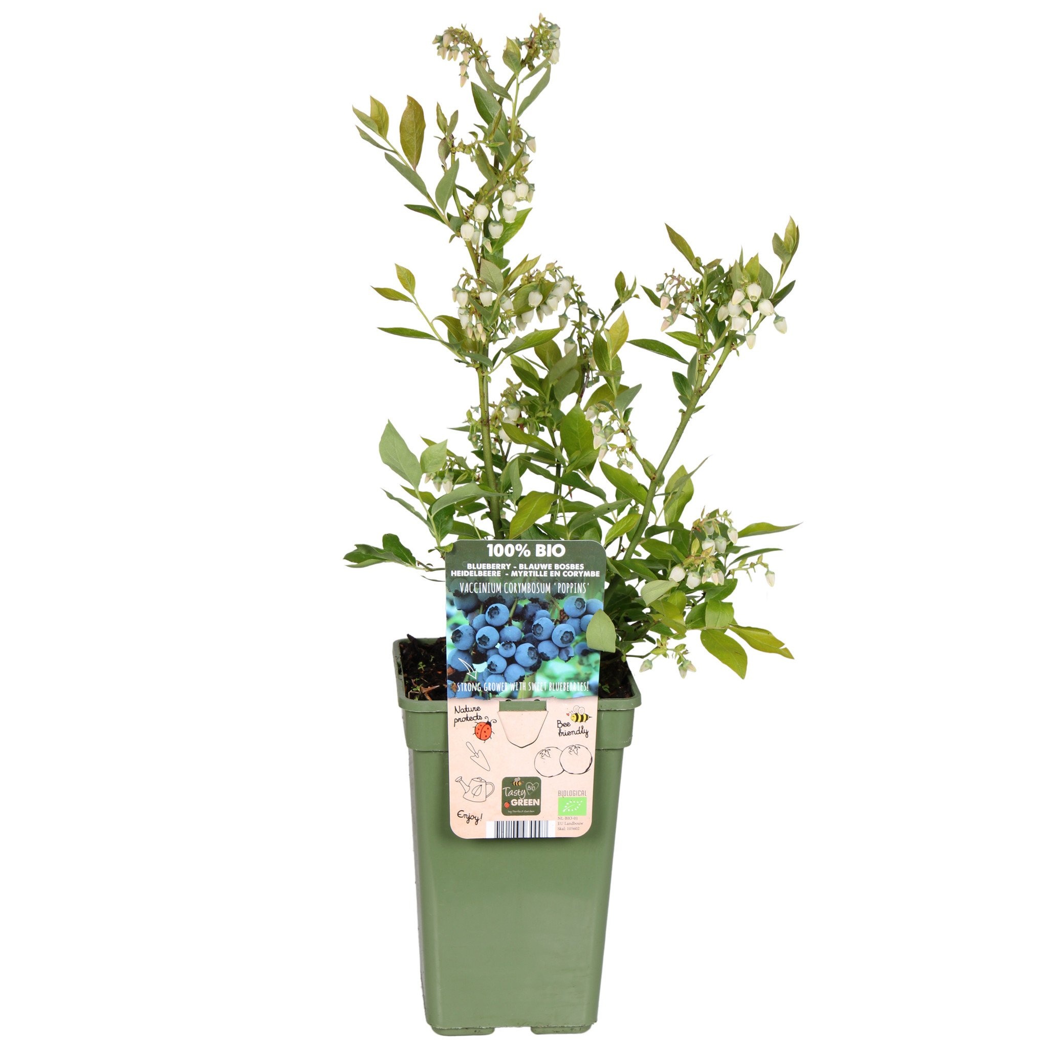 Borówka „Poppins” łączy w sobie piękno i funkcjonalność: jest zwarta, obficie owocująca i niezawodnie odporna na zimę. Ponadto jej świeżo zielone liście i letnie jagody zapewniają kolor i żywiołowość w każdym ogrodzie. Doskonały wybór dla wszystkich, którzy lubią zdrowe, własnoręcznie wyhodowane owoce o naturalnym wyglądzie.