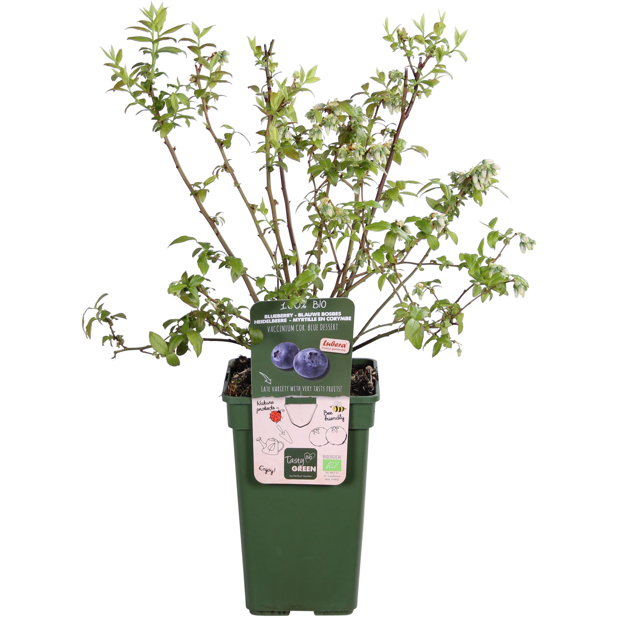 „Vaccinium corymbosum Blue Dessert” to borówka amerykańska, zwana również borówką czarną. Krzew osiąga wysokość około 100 cm i należy do niewielkich gatunków borówki. Rośnie wyłącznie na kwaśnej glebie, a gleby piaszczyste i torfowe mają kwaśny odczyn, więc są odpowiednie dla tej rośliny. Jeśli chcą Państwo posadzić ją w glebie gliniastej, będą musieli dodać kwaśną ziemię, aby roślina mogła przetrwać. Ma cienkie gałęzie i małe, świeżo zielone liście. Jagoda kwitnie w gronach, a kwiaty mają kolor od biało-kremowego do różowego. Kwitnienie trwa w pierwszej połowie maja. Jest to silna roślina, która daje dość dużo owoców. Jagody są średniej wielkości, jasnoniebieskie, jędrne i mają przyjemny smak. Zawierają dużo przeciwutleniaczy, więc są bardzo zdrowe! Można je zbierać od połowy lipca do połowy sierpnia. Świeże jagody można przechowywać przez tydzień, ale można je również zamrozić. Roślina ta jest całkowicie samozapylająca i prawie nie wymaga pielęgnacji. Należy chronić jagody przed ptakami za pomocą siatki. Roślina jest odporna na zimę i choroby.