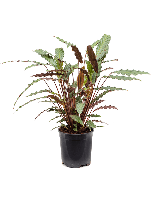 Calathea znana jest ze swoich wyjątkowych, pasiastych i kolorowych liści. Piękne wzory na liściach nadają jej wyjątkowy i efektowny wygląd. Jeśli lubią Państwo mieć w domu coś wyjątkowego, Calathea będzie dobrym wyborem. Oprócz tego, że roślina ta pięknie komponuje się z każdym wnętrzem, ma również właściwości oczyszczające powietrze. Nie zdziw się, jeśli pod wieczór roślina przyjmie inną pozycję. Liście zamykają się bowiem pod wieczór.