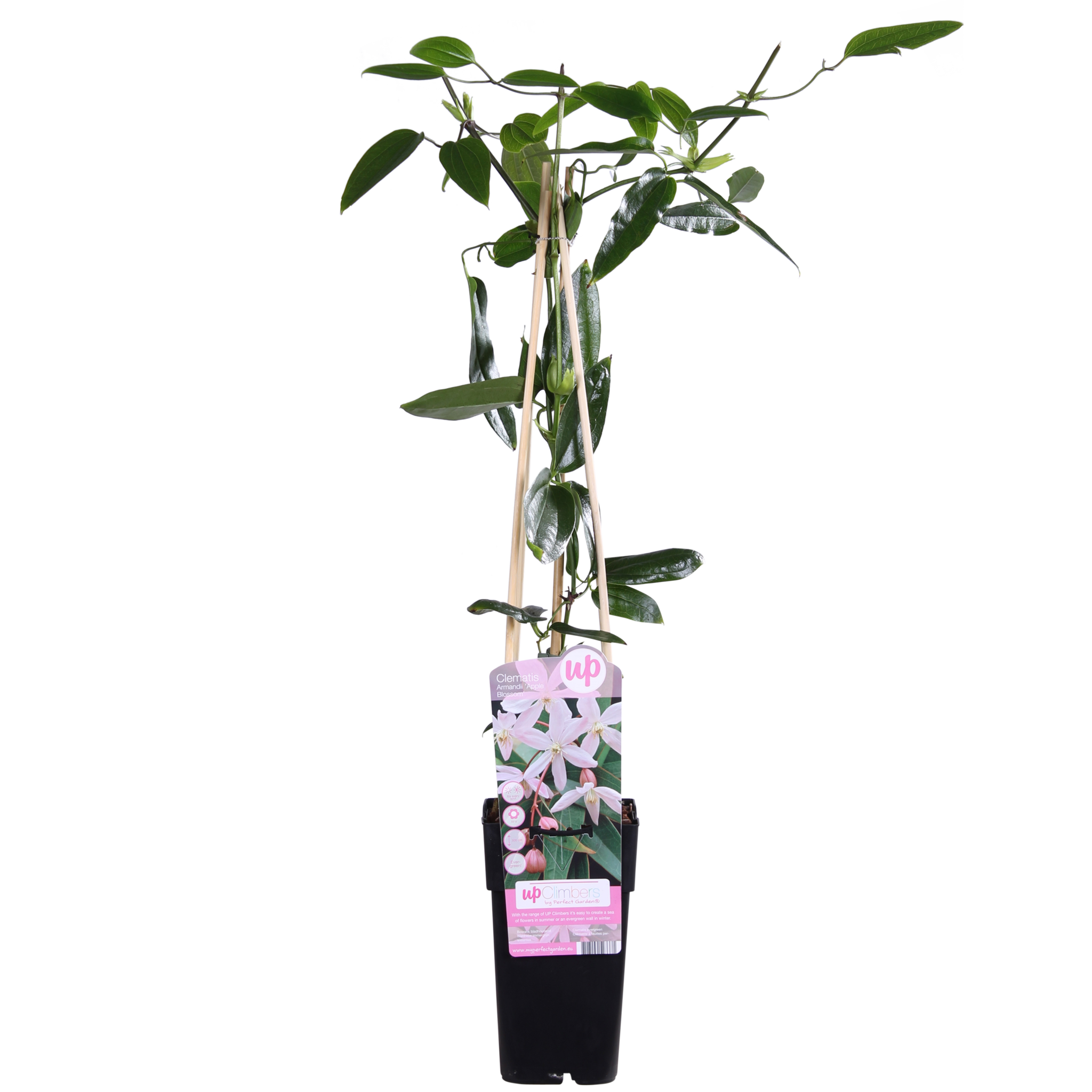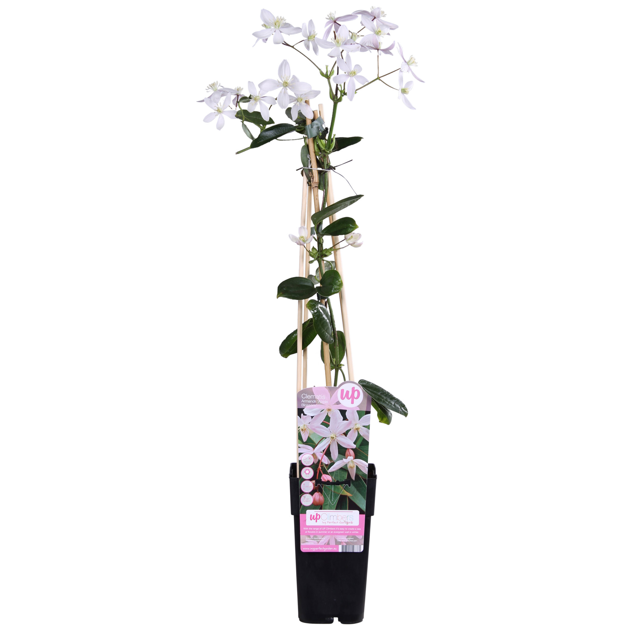 „Clematis armandii Apple Blossom” zawdzięcza swoją nazwę kwiatom, które pod względem koloru bardzo przypominają kwiaty jabłoni. Kwiaty w pąku są różowe, a same płatki są białe z żółtobiałymi pręcikami w środku. Kwiaty pojawiają się na pnączu już wczesną wiosną. Jest to obficie kwitnąca roślina, którą chętnie odwiedzają pszczoły. Cechą szczególną tego pnącza jest to, że jest to jeden z niewielu powojników, który pozostaje zielony zimą. Jego liście są skórzaste, podłużne, zielone i bardzo eleganckie. Jest to pnącze, które przyczepia się za pomocą wijących się ogonków liściowych i dobrze rośnie przy płocie, ścianie lub pergoli, ale potrzebuje drutu do pnączy lub kratki. Można mu od czasu do czasu trochę pomóc, przywiązując nowe pędy starannie do kratki lub prowadząc je wzdłuż płotu. Lubi stać w osłoniętym i słonecznym miejscu w ogrodzie. Powojnik będzie obficiej kwitł w pełnym słońcu. Powojnik jest mrozoodporny do -10 stopni. Przycinanie powojnika nie jest konieczne. Ewentualnie można go przyciąć po kwitnieniu, co może sprzyjać dalszemu kwitnieniu.