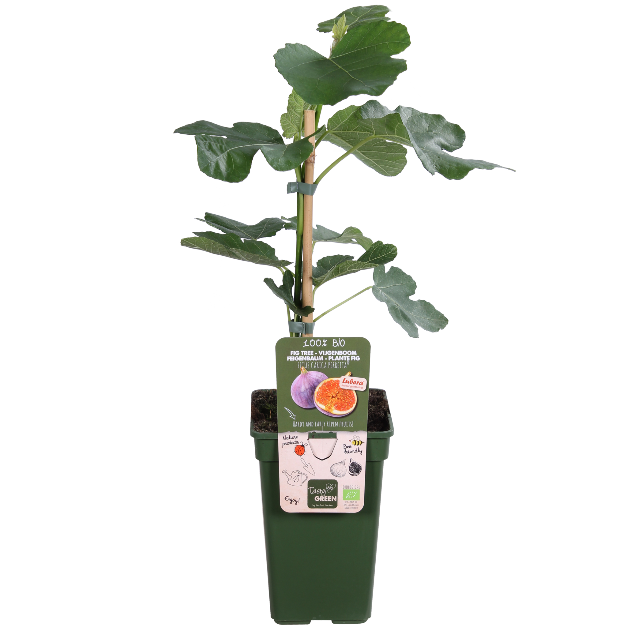 „Ficus Gustissimo Perretta” to drzewo figowe, które owocuje dwa razy w roku i jest najbardziej odpowiednie dla naszego klimatu. To drzewo figowe jest wyjątkowo mrozoodporne i nadaje Twojemu ogrodowi śródziemnomorski klimat. Owoce mają słodki smak i można je jeść od razu po zerwaniu. Figi są zielono-brązowe z miąższem o głębokim czerwonym kolorze. Figa nie ma kwiatów, w rzeczywistości owoce są również kwiatami. Liście drzewa figowego mają kształt dłoni. Liść drzewa figowego jest najbardziej znany z przedstawień Adama i Ewy w malarstwie klasycznym, gdzie liść figowy był używany do zakrywania nagiego ciała. W drugim roku po posadzeniu możemy rozpocząć zbiory od końca lata. Owoce będą lepiej dojrzewać, jeśli ochronisz drzewo zimą. „Ficus Gustissimo Perretta” potrzebuje osłoniętego, ale słonecznego miejsca, najlepiej jak najcieplejszego. Ogród od strony południowej, osłonięty od wiatru, jest więc optymalny. Jest to szybko rosnąca roślina, więc jeśli jej nie przycinasz, osiągnie kilka metrów wysokości. Ta figa zakorzenia się szybciej niż większość odmian. Jeśli gałęzie stają się zbyt długie, możesz przyciąć figę.