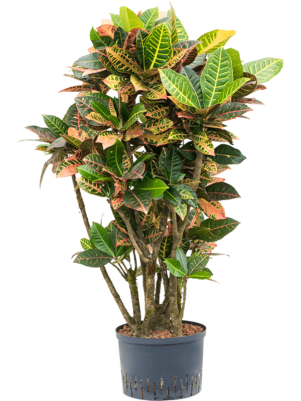 Kroton Codiaeum, czyli Trójskrzyn pstry, zawdzięcza swoją holenderską nazwę dużym, pstrym liściom, które mogą przybierać kolory biały, żółty, czerwony, pomarańczowy, a nawet fioletowy. Kroton pochodzi z rodziny Crotoneae (Euphorbiaceae), czyli po polsku: Wilczomleczowate. Te rośliny doniczkowe pochodzą z Azji Południowo-Wschodniej.
