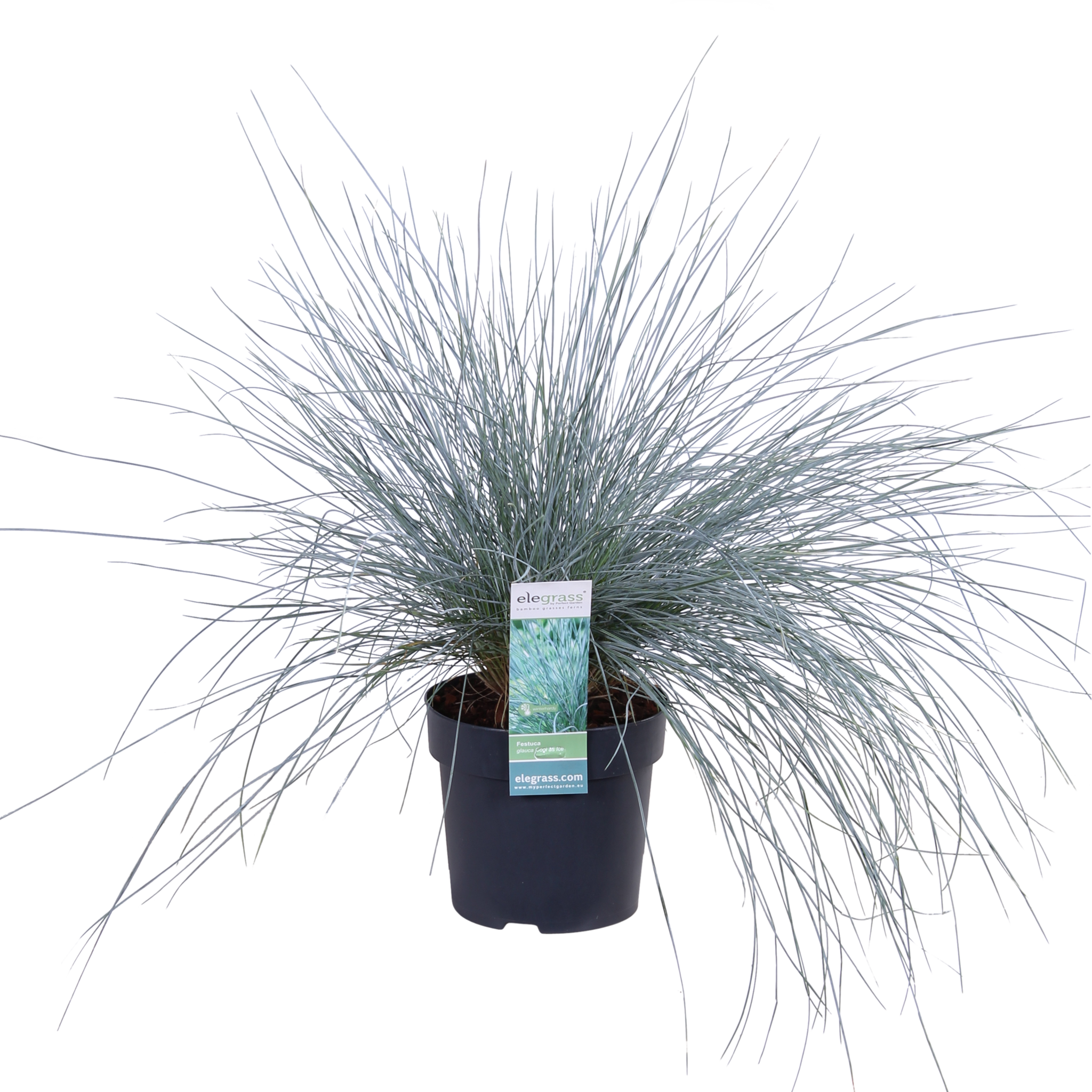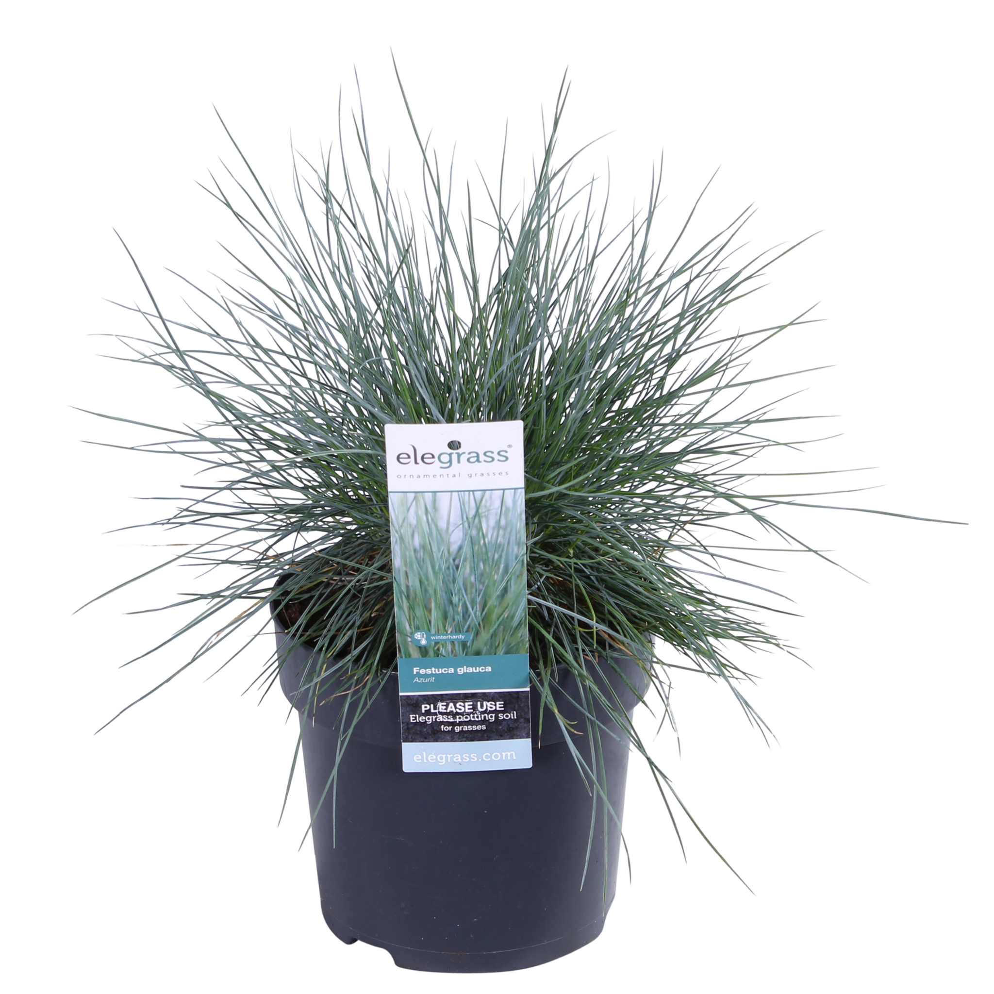 ‘Festuca Glauca Azura Blue’, zwana również kostrzewą siną, to uderzająca roślina. Ta jaskrawa, srebrno-niebieska trawa nadaje Twojemu ogrodowi wyjątkowy akcent kolorystyczny! Kostrzewa sina jest mrozoodporna i zimozielona, dzięki czemu przez cały rok zapewnia piękny widok. Dzięki swoim walorom ozdobnym roślina ta nadaje się do każdego ogrodu, od skalnego po nowoczesny. W czerwcu i lipcu na kostrzewie sinej pojawiają się piękne, kremowe pióropusze. Kwitną one aż do późnej zimy. ‘Festuca’ lepiej nie przycinać, lecz 'przeczesywać'. Polega to na ręcznym usuwaniu brzydkich, brązowych i luźnych źdźbeł z rośliny. Zaleca się wczesną wiosną wycinać stare kwiaty z rośliny, aby zrobić miejsce na nowe. ‘Festuca’ osiąga maksymalnie 50 cm wysokości, jest więc rośliną o zwartym wzroście.