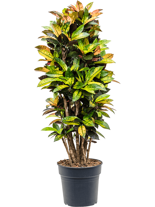 Kroton Codiaeum, czyli Trójskrzyn pstry, zawdzięcza swoją holenderską nazwę dużym, pstrym liściom, które mogą przybierać kolory biały, żółty, czerwony, pomarańczowy, a nawet fioletowy. Kroton pochodzi z rodziny Crotoneae (Euphorbiaceae), czyli po polsku: wilczomleczowatych. Te rośliny doniczkowe pochodzą z Azji Południowo-Wschodniej.