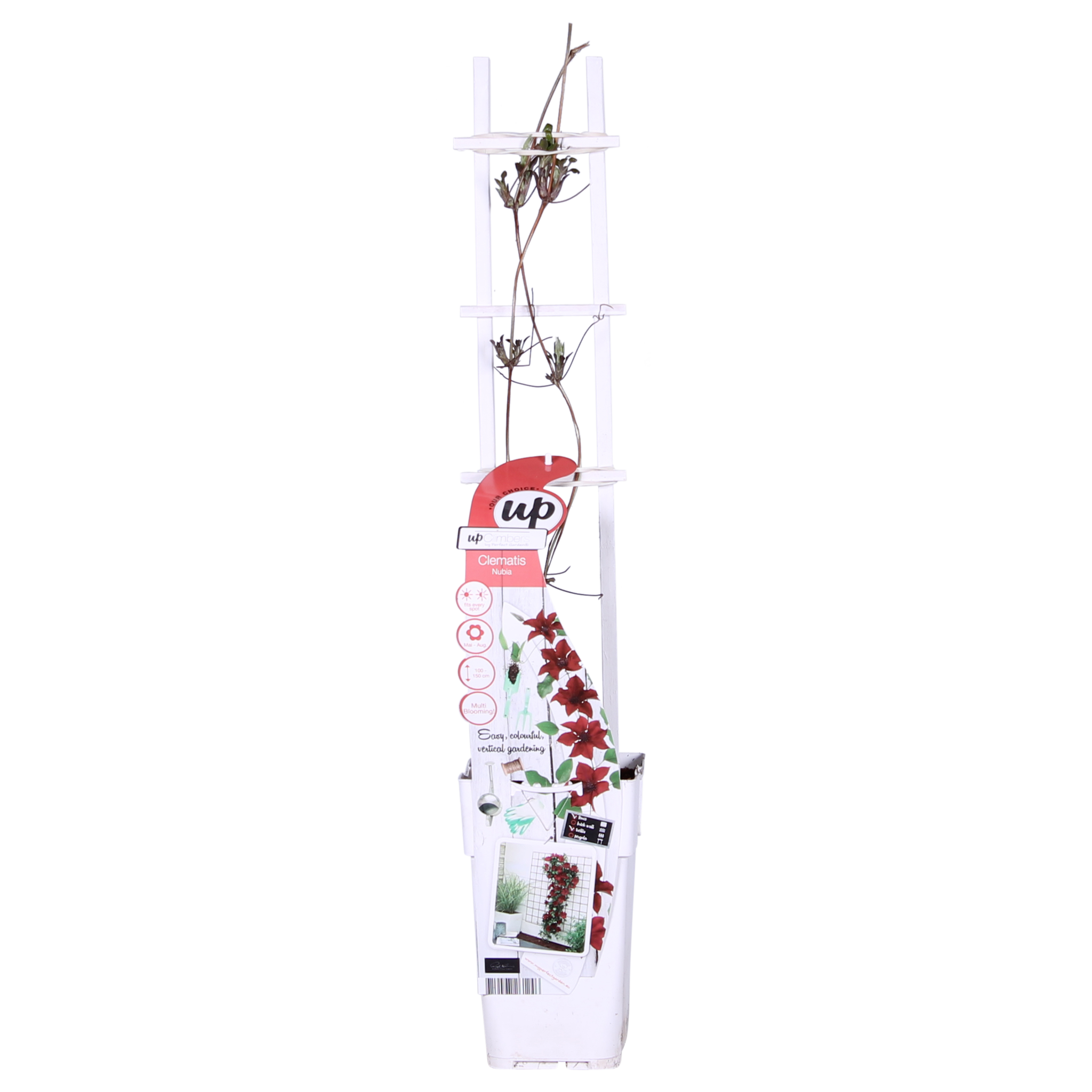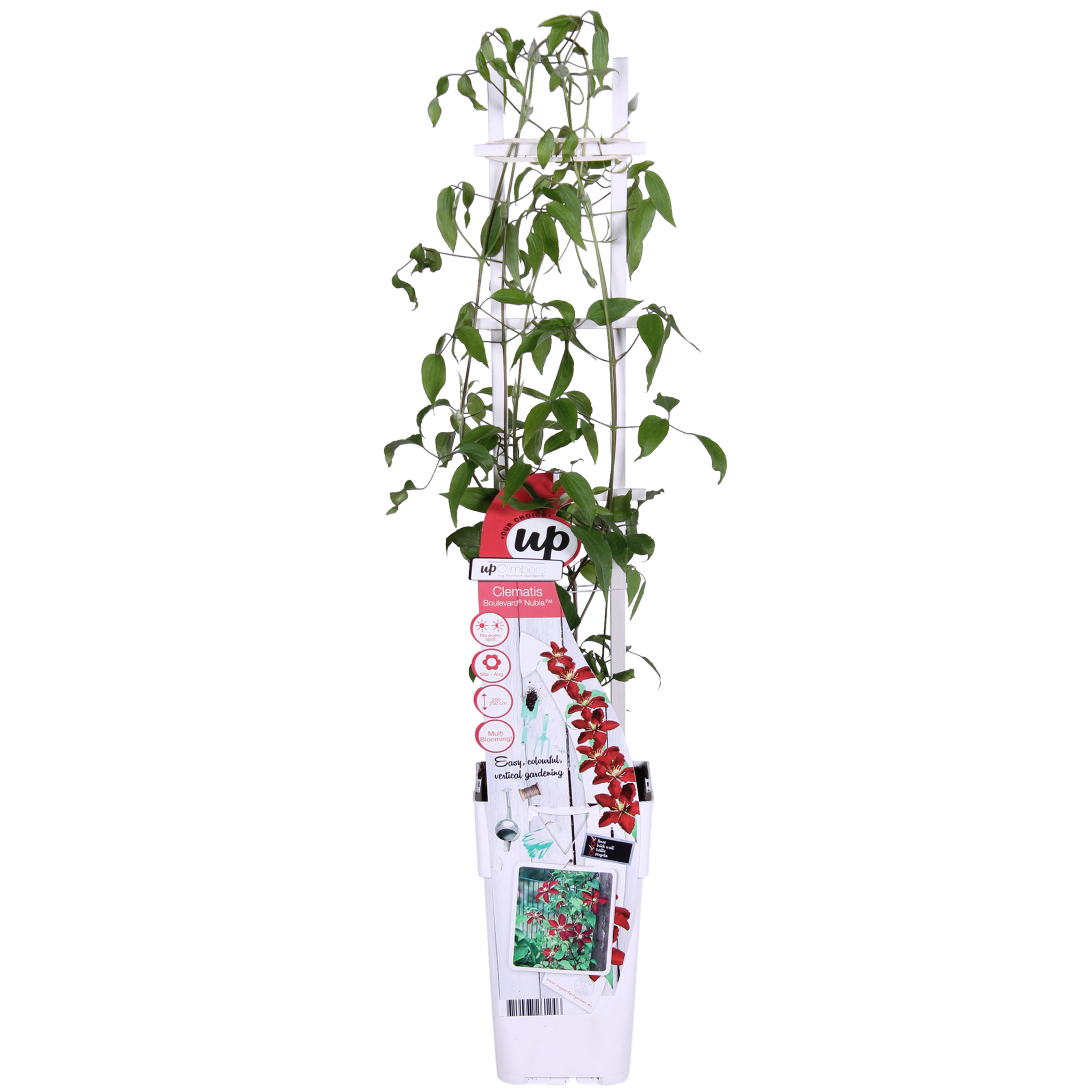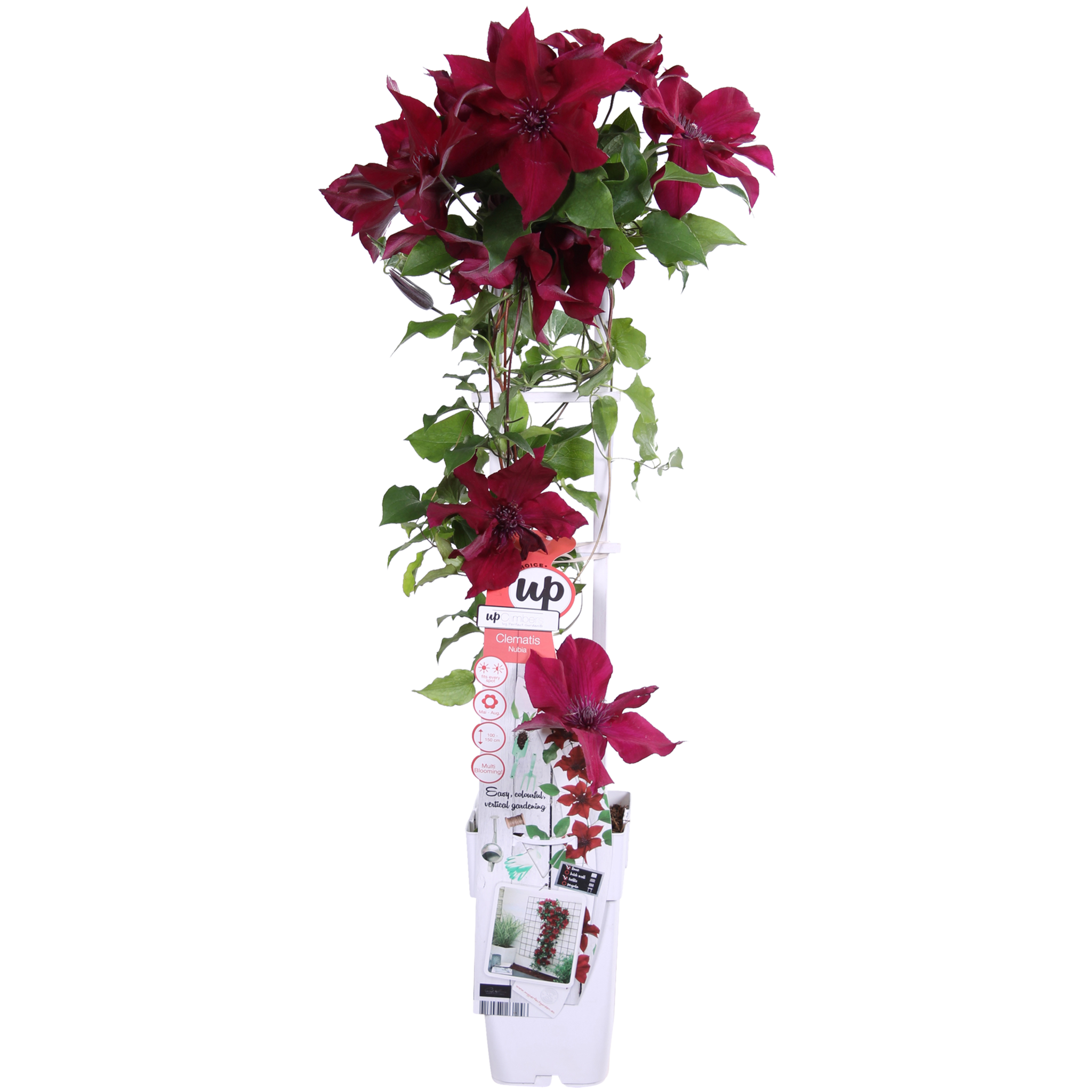 Bardzo wyjątkowy powojnik, który kwitnie przez całe lato. Od maja do września możesz cieszyć się jego dużymi czerwonymi kwiatostanami. Już w pierwszym roku powojnik zapewnia oazę kwiatów. W przeciwieństwie do większości odmian powojników, które kwitną przez 1 do 2 miesięcy, ‘Nubia’ może cieszyć oko przez 5 miesięcy. Powojnik ‘Nubia’ osiąga maksymalnie 180 cm wysokości przy pergoli lub kratce. Ten powojnik najlepiej czuje się w miejscu w (pół)pełnym słońcu. Najbardziej idealne jest miejsce z porannym i/lub wieczornym słońcem. Ponieważ ‘Nubia’ jest odmianą kompaktową, można ją również posadzić w doniczce na balkonie, tarasie, a nawet w wiszącym koszu. Aby powojnik lepiej się wspinał, potrzebuje trochę pomocy. Najlepiej jest prowadzić roślinę wzdłuż kratki, drutu lub tyczki. Przycinanie nie jest konieczne. Należy jednak usunąć martwe i uszkodzone pędy na początku marca. Wiosną można przyciąć ten powojnik do maksymalnie 20 centymetrów nad ziemią.