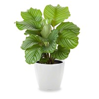 Calathea znana jest ze swoich wyjątkowych, pasiastych i kolorowych liści. Piękne wzory na liściach nadają jej wyjątkowy i efektowny wygląd. Jeśli lubią Państwo mieć w domu coś wyjątkowego, Calathea będzie dobrym wyborem. Oprócz tego, że roślina ta pięknie komponuje się z każdym wnętrzem, ma również właściwości oczyszczające powietrze. Nie zdziw się, jeśli pod wieczór roślina przyjmie inną pozycję. Liście zamykają się bowiem pod wieczór.