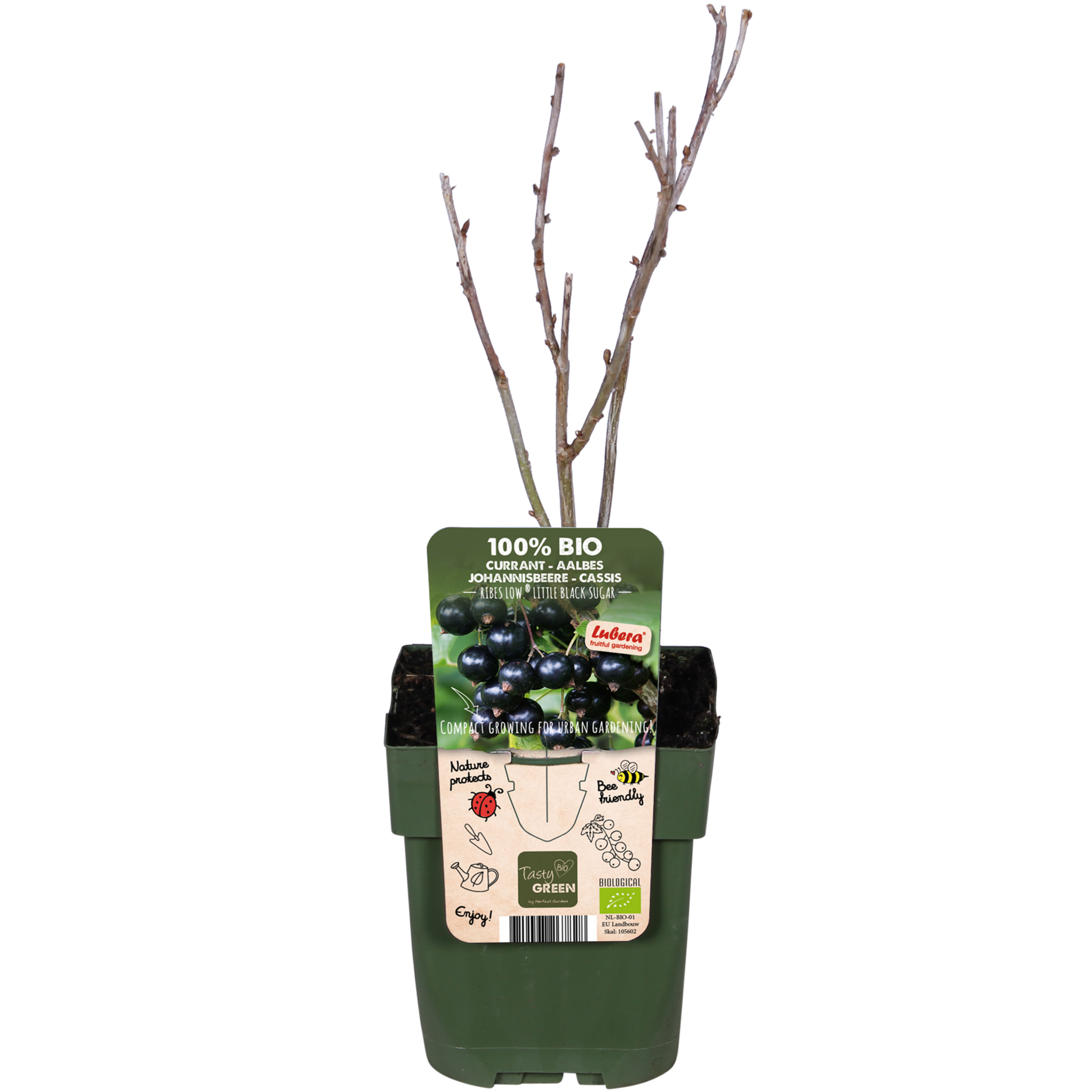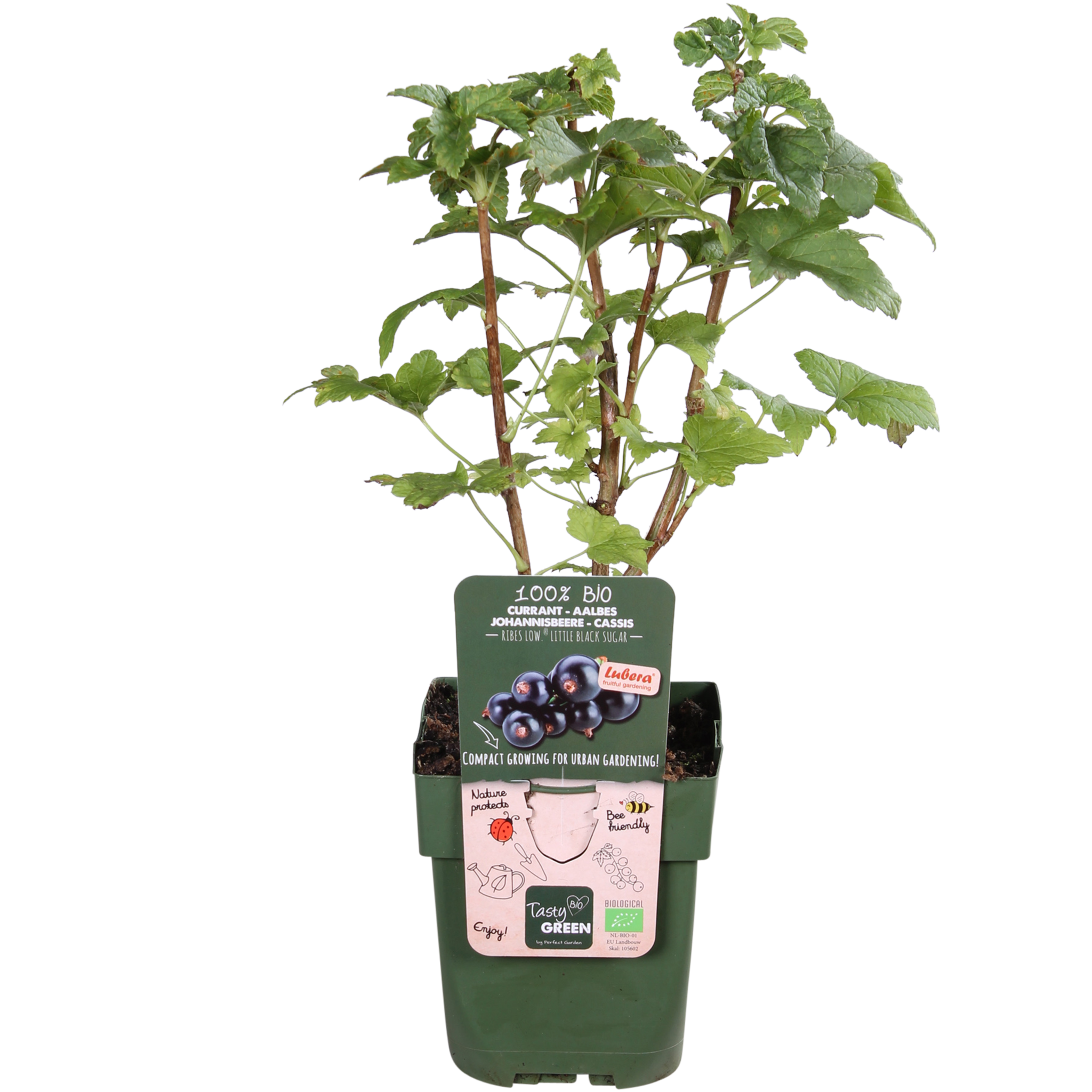 Tasty Green, owoce pochodzące w 100% z upraw ekologicznych. Oznacza to, że podczas uprawy wykorzystywano wyłącznie materiały pochodzenia roślinnego i zwierzęcego. Doniczka i etykieta są wykonane z tworzywa sztucznego pochodzącego z recyklingu, dzięki czemu stanowią rozwiązanie przyjazne dla środowiska. „Ribes Lowberry Little Black Sugar” to czarna porzeczka. Krzew czarnej porzeczki pozostaje zwarty i osiąga wysokość zaledwie 80–100 cm. Dzięki temu nadaje się również do małego ogrodu lub na balkon. Około połowy maja krzew ten kwitnie niepozornymi biało-różowymi kwiatami, przyciągając owady zapylające. Po kwitnieniu na krzewie pojawiają się czarne, błyszczące jagody w dużych gronach. Krzew potrzebuje bezpośredniego nasłonecznienia, aby uzyskać optymalny plon i słodsze jagody. Jagody z tego krzewu można zbierać od czerwca. Owoce można spożywać na surowo, ale jeszcze smaczniejsze są przetworzone na dżem lub sok.