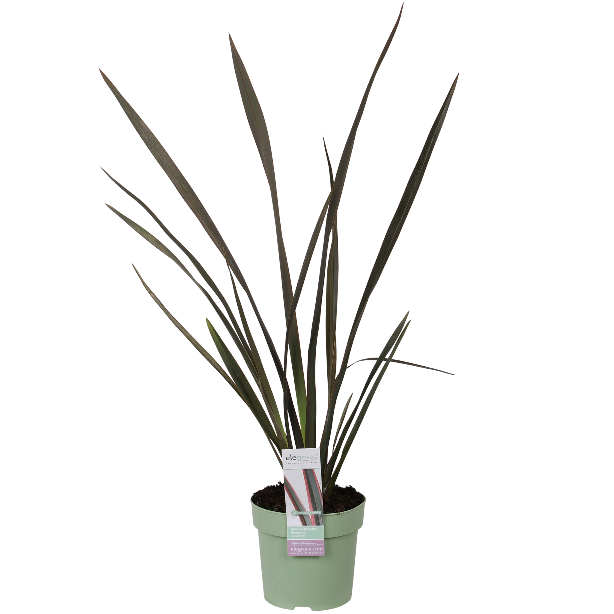 „Phormium tenax Sundowner”, zwany w języku niderlandzkim „lnem nowozelandzkim”, jest wiecznie zieloną rośliną egzotyczną o charakterystycznych sztywnych i mieczowatych liściach. Wyprostowane liście mają brązowozielone paski z różowymi brzegami. Po kilku latach Phormium może zakwitnąć efektownymi wysokimi kwiatostanami i rurkowatymi, ciemnoczerwonymi kwiatami w lipcu i sierpniu. Niestety, w naszym klimacie morskim roślina ta rzadko kwitnie. Phormium jest odporne na zimę i wiecznie zielone, dzięki czemu stanowi kolorowy dodatek do Państwa ogrodu zimowego. Roślina ta jest łatwa w pielęgnacji i odporna na upały i suszę. Phormium najlepiej prezentuje się jako przyciągająca wzrok roślina soliterowa, ale dobrze radzi sobie również w grupach. Roślina nie wymaga przycinania, ale można usunąć martwe liście. Phormium najlepiej rośnie w osłoniętym miejscu, na glebie suchej do wilgotnej, bogatej w składniki odżywcze, w pełnym słońcu lub w lekkim cieniu.