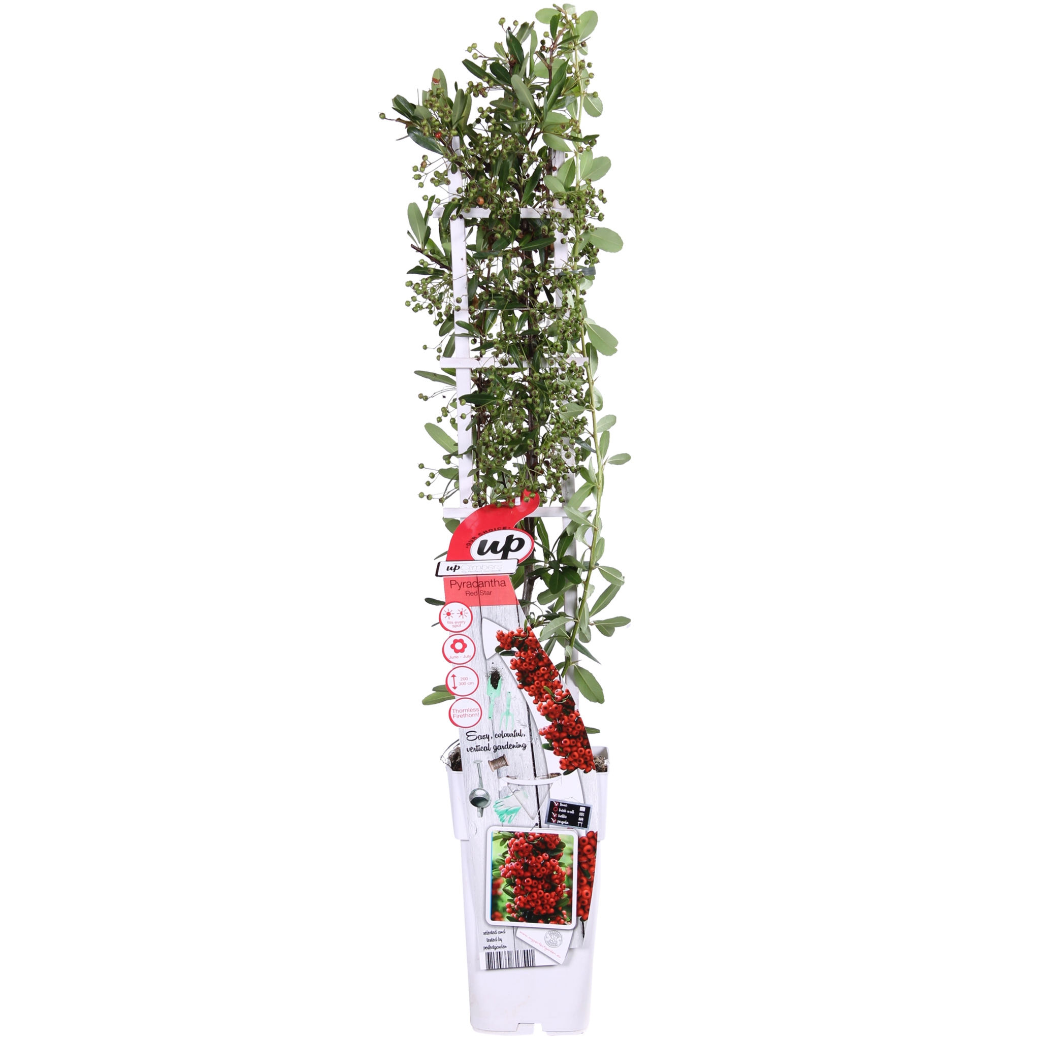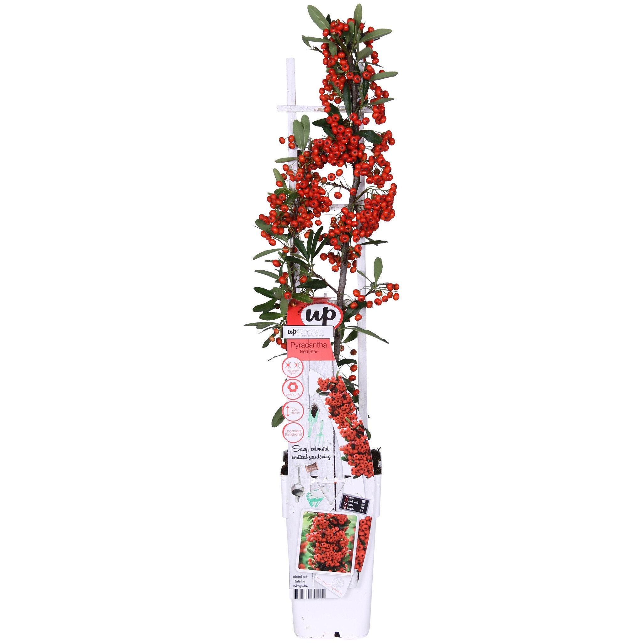 „Pyracantha coccinea Red Star” to prawdziwa gwiazda wśród odmian ognika. Ten ognik ma mniej kolców i więcej jagód niż inne odmiany. Jest to zimozielony krzew, który w czerwcu kwitnie białymi kwiatami. Kwiaty te przyciągają motyle i pszczoły. Następnie kwiaty zamieniają się w jagody, które od września przybierają czerwony kolor. Ptaki również uwielbiają te jagody. Ich piękny, jasny, intensywny kolor utrzymuje się z pewnością do po świętach Bożego Narodzenia. Dlatego jest to również wspaniały element świąteczny. Roślina obficie owocuje na dwuletnim drewnie. Ponieważ kwitnie tylko na dwuletnim drewnie, odradza się intensywne przycinanie tego krzewu. Pyracanthę można posadzić jako soliter w ładnej, dużej donicy na balkonie lub tarasie. Ponadto doskonale nadaje się do ogrodu, a nawet jako żywopłot. Roślina potrzebuje wsparcia do wspinania się, ponieważ rośnie jak zwykły krzew i dlatego musi być przywiązywana. Dla tego krzewu dobre jest stanowisko słoneczne lub półcieniste, a co do rodzaju gleby, ma niewielkie wymagania – każda normalna do wilgotnej gleba jest odpowiednia. Jest bardzo mrozoodporny, wytrzymuje temperatury do -30 stopni.