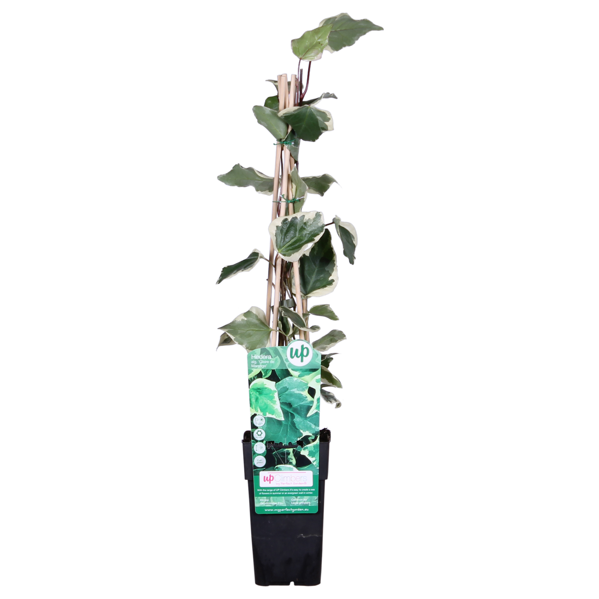 Bluszcz (Hedera). Kto go nie zna. Od lat jest jedną z najczęściej sadzonych roślin pnących. Powodem tego jest to, że te rośliny pnące są bardzo łatwe w utrzymaniu i pozostają pięknie zielone zimą. Doskonale nadaje się więc do maskowania brzydkiej ściany lub szopy, ale także jako (zimozielone) ogrodzenie między tobą a twoimi sąsiadami. Najczęściej używane gatunki to Helix i Hibernica, z których Hibernica jest najszybciej rosnąca. Istnieje jednak wiele innych gatunków o różnorodnych kolorach i kształtach liści. Mamy na przykład również Goldheart (żółty/pstrokaty), Gloire de Marengo (bluszcz algierski) i Dentata Variegata (duże pstre liście).
