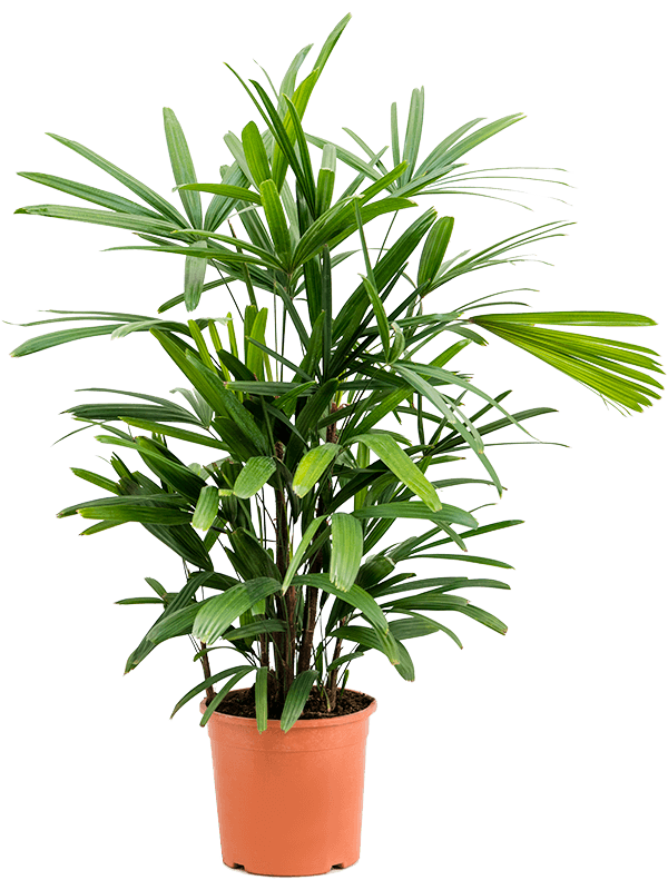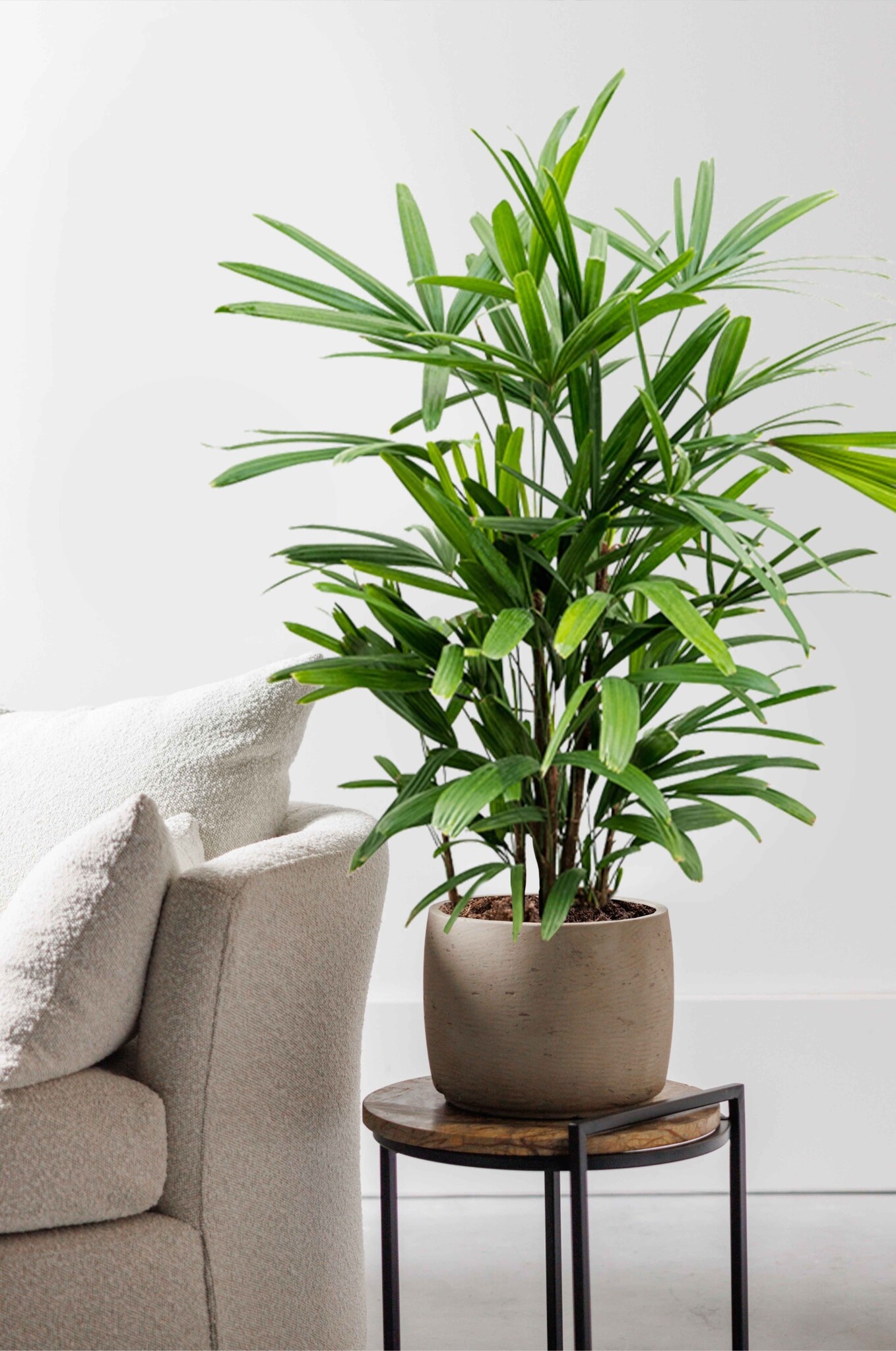Rhapis to oczyszczająca powietrze roślina, która przyciąga wzrok, a ponadto jest łatwa w pielęgnacji! Rhapis ma przydomek „palma bambusowa”, ponieważ jej pnie bardzo przypominają bambus. Grubsze pnie zapewniają dodatkową wytrzymałość, a ich brązowy kolor stanowi ładny kontrast z zielonymi liśćmi.