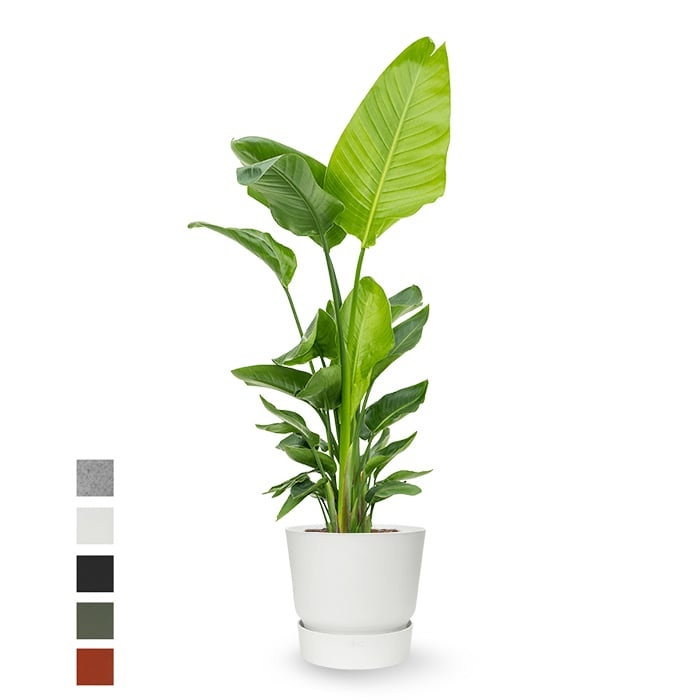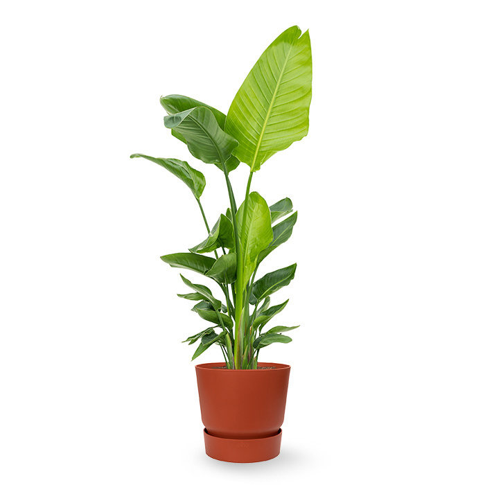 Strelitzia to niezwykle popularna roślina ze względu na swoje piękne wachlarze, imponujące liście rosnące w górę. Roślina ta często stanowi centralny punkt w pomieszczeniu i wprowadza do wnętrza klimat dżungli.