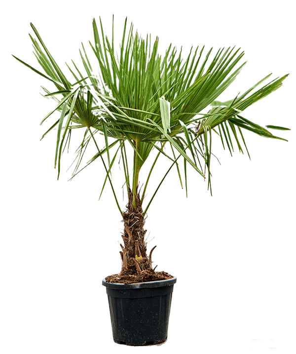 Trachycarpus pochodzi z północnych Chin. Roślina ta nazywana jest również palmą wachlarzową ze względu na liście w kształcie wachlarza. Trachycarpus rośnie szybko i w gruncie może osiągać około 30 cm wzrostu rocznie.