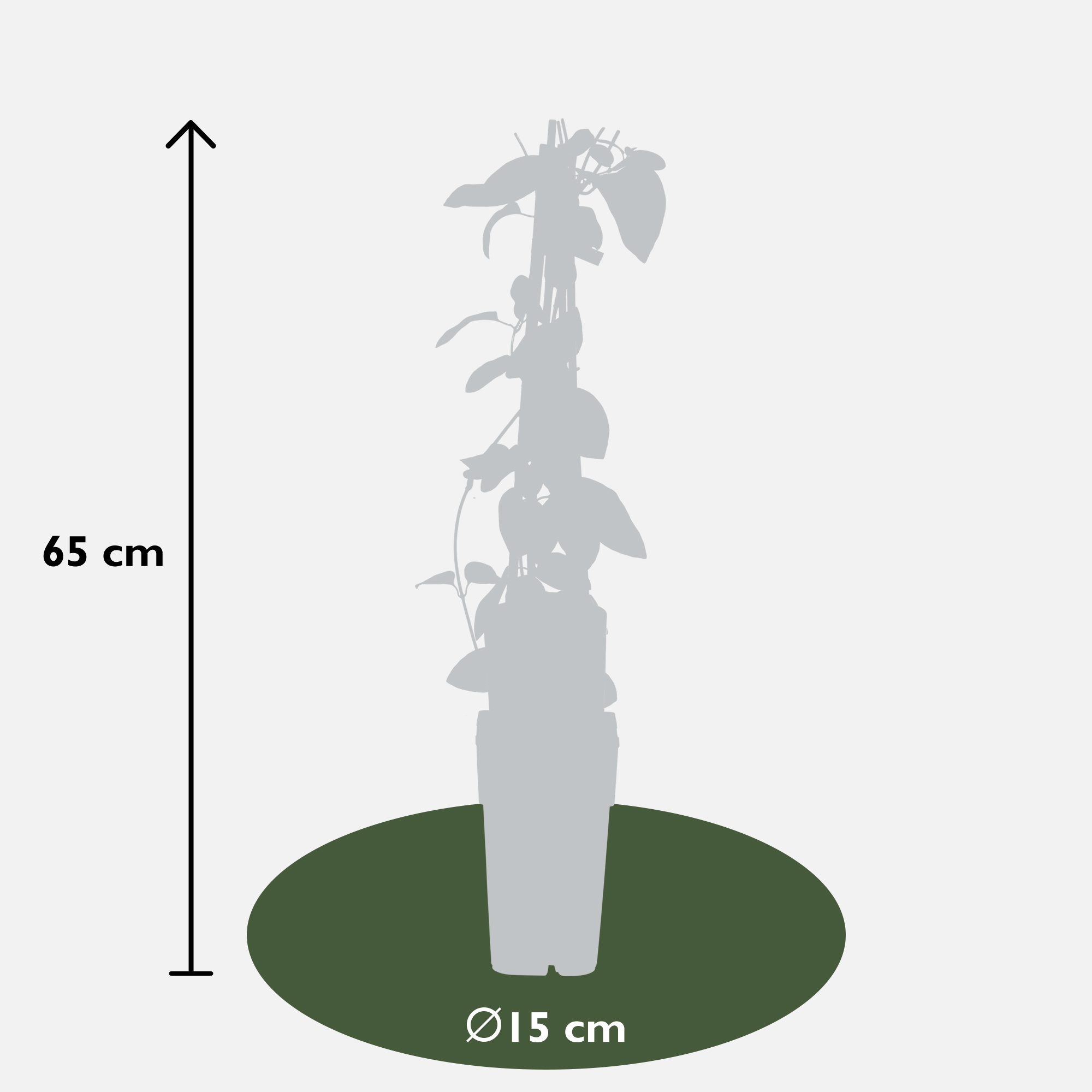 Onze basis opmaak bestaat uit semi hydro, dat betekent dat wij vanaf een potmaat van 20 centimeter en groter, de planten rondom de kwekersaarde afstrooien met hydrokorrels. Hierbij heeft u als extra keuze om een watermeter toe te voegen en of u de bovenkant van de pot wilt laten afstrooien met houtsnippers.