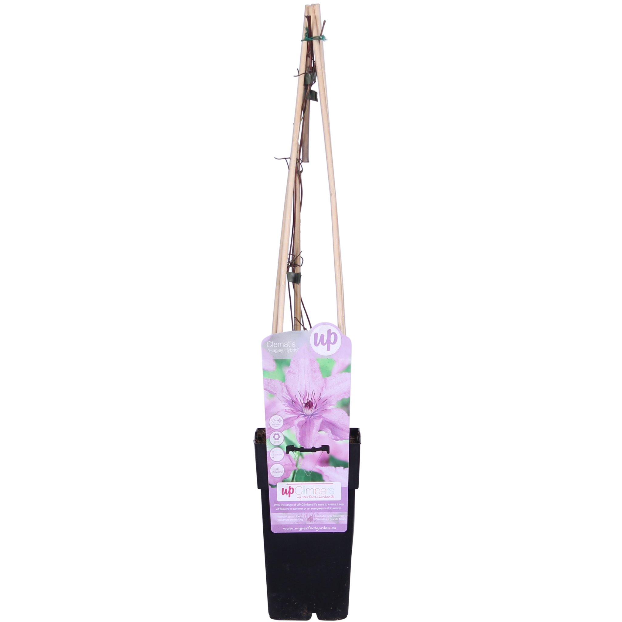 „Clematis Hagley Hybrid” to powojnik o dużych kwiatach, który ma piękne różowe kwiaty. Pojawiają się one w miesiącach letnich, od lipca do września. Zimą traci liście, ale wiosną ponownie pięknie kwitnie. Pod koniec zimy należy przyciąć powojnik do 30 cm nad ziemią, aby uzyskać najbogatsze kwitnienie i utrzymać roślinę w dobrej kondycji. Jeśli chcą Państwo, aby powojnik rósł wzdłuż kratki lub ogrodzenia, warto nieco pomóc roślinie. Można to zrobić, przywiązując nowe pędy do kratki lub prowadząc je wzdłuż ogrodzenia. Powojnik dobrze rośnie zarówno w półcieniu, jak i w słońcu. Dzięki temu nadaje się do większości miejsc w ogrodzie. Im więcej słońca, tym obficiej kwitnie powojnik. Korzenie powojnika muszą jednak znajdować się w cieniu i chłodzie. Należy zadbać o to, aby u podstawy rośliny zawsze rosło coś lub posadzić powojnik głębiej w ziemi, około 10 cm głębiej niż wysokość bryły korzeniowej. W ten sposób będzie on chroniony przed nieprzyjemną chorobą więdnięcia, która może zaatakować nadziemne łodygi, a pod ziemią roślina pozostanie zdrowa.
