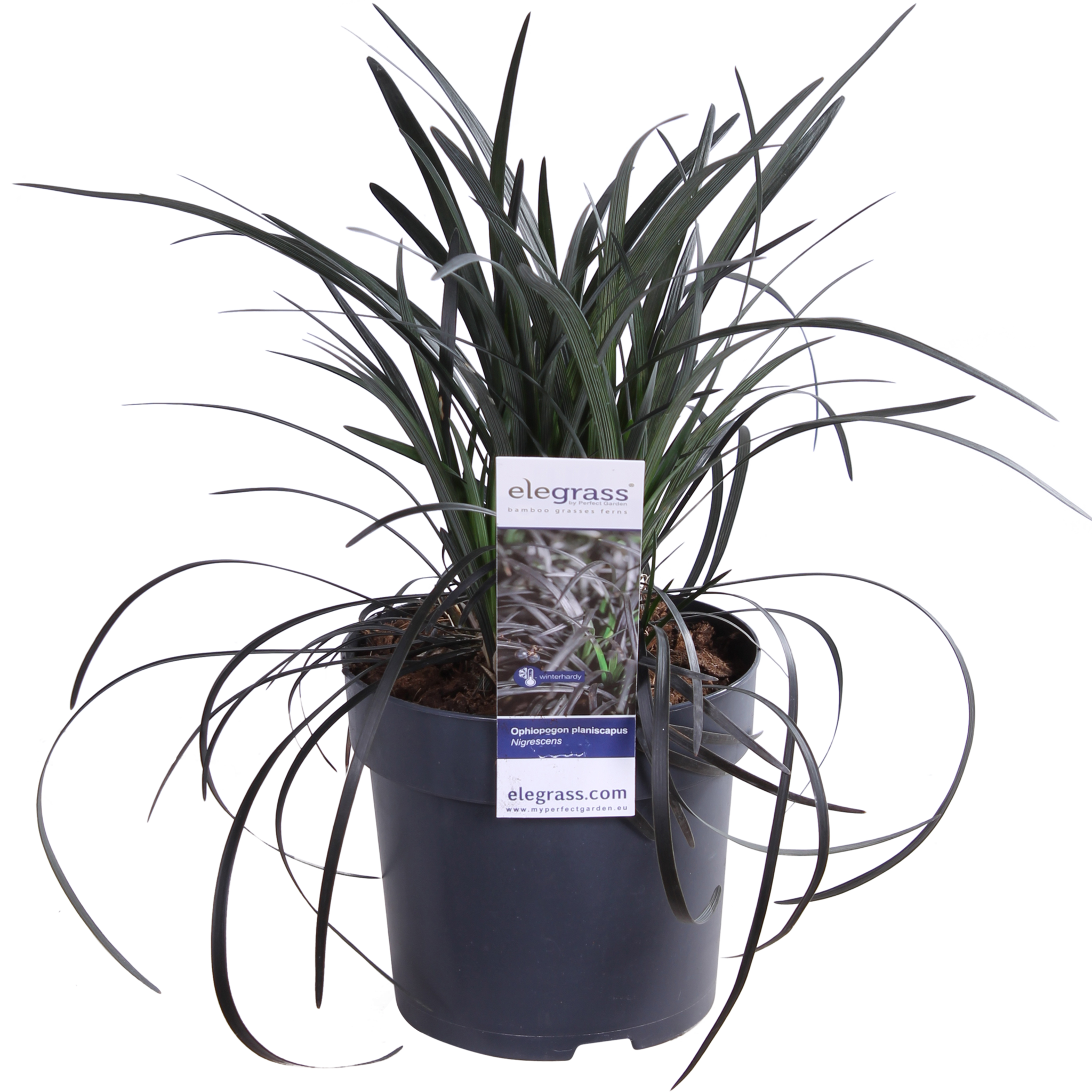 ‘Ophiopogon Planiscapus Nigrescens’, znany również jako wężobród, to niska trawa ozdobna, która osiąga około 20 centymetrów wysokości. Pochodzi z Japonii, a jego unikalne, efektowne, trawiaste, czarno-zielone liście są bardzo dekoracyjne.