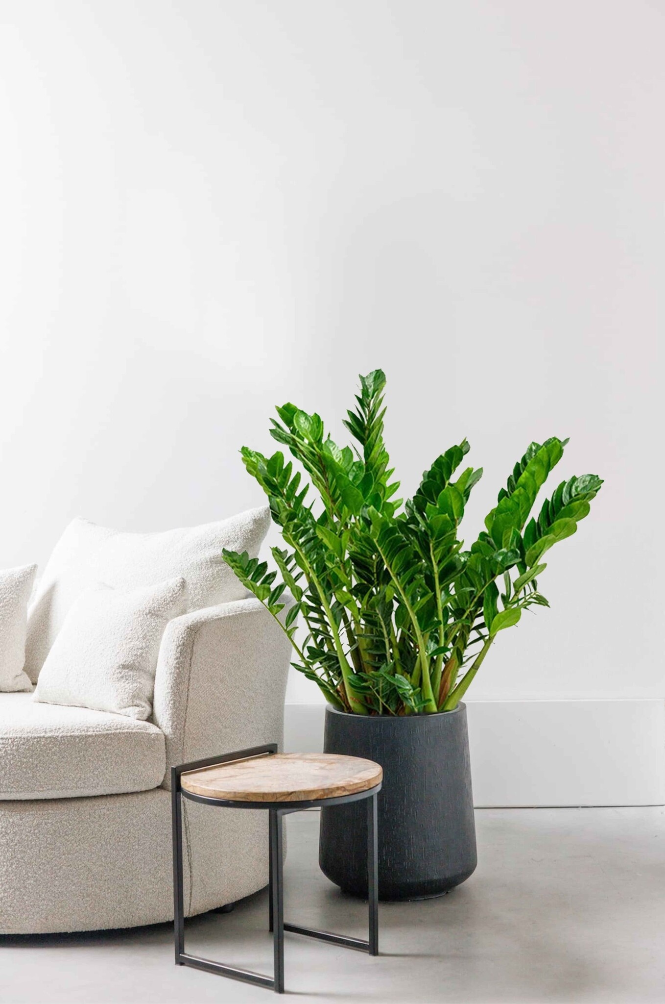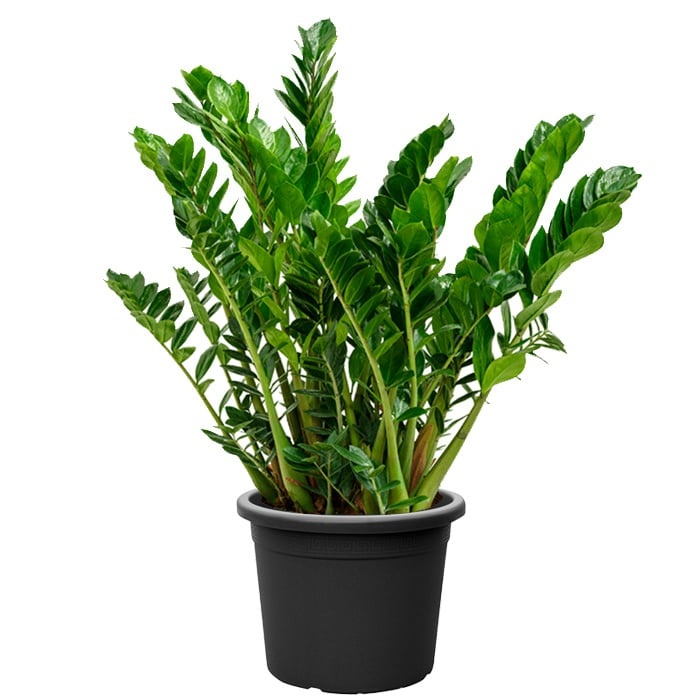 Zamioculcas wyróżnia się wyglądem, który nieco przypomina pióropusz. Grube łodygi magazynują wilgoć i składniki odżywcze, dzięki czemu roślina ma, pozornie, niewyczerpaną wytrzymałość. To sprawia, że jest to jedna z najłatwiejszych roślin doniczkowych w historii. Zamioculcas pozostaje stoicki w obliczu zapominalskich właścicieli i w międzyczasie wiernie zachowuje swój zielony kolor.