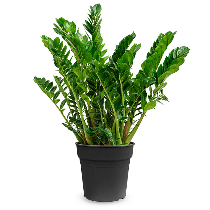 Zamioculcas wyróżnia się wyglądem przypominającym nieco pióropusz. Grube łodygi magazynują wilgoć i składniki odżywcze, dzięki czemu mają pozornie niewyczerpaną wytrzymałość. To sprawia, że jest to jedna z najłatwiejszych w pielęgnacji roślin doniczkowych. Zamioculcas pozostaje stoicki wobec zapominalskich właścicieli, zachowując przy tym wierną zieleń.