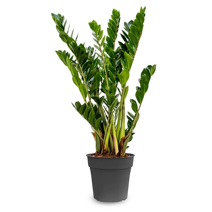 Zamiokulkas wyróżnia się wyglądem, który nieco przypomina pióropusz. Grube łodygi magazynują wodę i składniki odżywcze, dzięki czemu mają, pozornie, niewyczerpaną wytrzymałość. To sprawia, że jest to jedna z najłatwiejszych roślin doniczkowych w historii. Zamiokulkas pozostaje stoicki wobec zapominalskich właścicieli i w międzyczasie wiernie zachowuje zieleń.