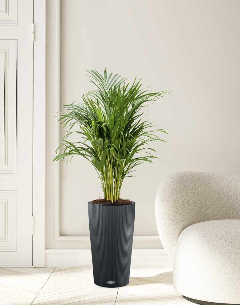 Rośliny w doniczkach Lechuza są optymalnie nawadniane dzięki zaawansowanemu systemowi nawadniania. Dzięki temu nigdy nie podacie Państwo roślinie zbyt dużo lub zbyt mało wody. Poręczny wodomierz pozwala łatwo sprawdzić, kiedy należy uzupełnić zbiornik, co jest przydatne w biurze! Ponadto bezpłatnie przygotowujemy roślinę wraz z doniczką Lechuza.